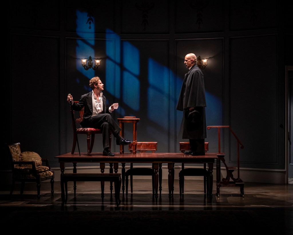 “Along with Clifford’s outstanding direction, he has chosen wisely the cast performing the gifted dialogue and physical movements of this piece. Award- winning Ian Merrill Peakes as Antonio Salieri and Samuel Adams as Wolfgang Amadeus Mozart are transcendent in their performances. Both have the ability to wrap the audience in a blanket of understanding as to why they are at this crossroads in their lives, and with each line of dialogue, they allow the spectator to be lost in a memorizing world of poetry and understanding to just who Salieri and Mozart are.” – Plays To See